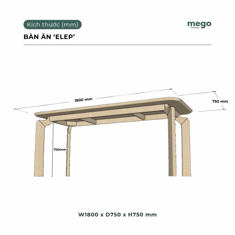 THÔNG SỐ KỸ THUẬT: BÀN ĂN GỖ TỰ NHIÊN 'ELEP'