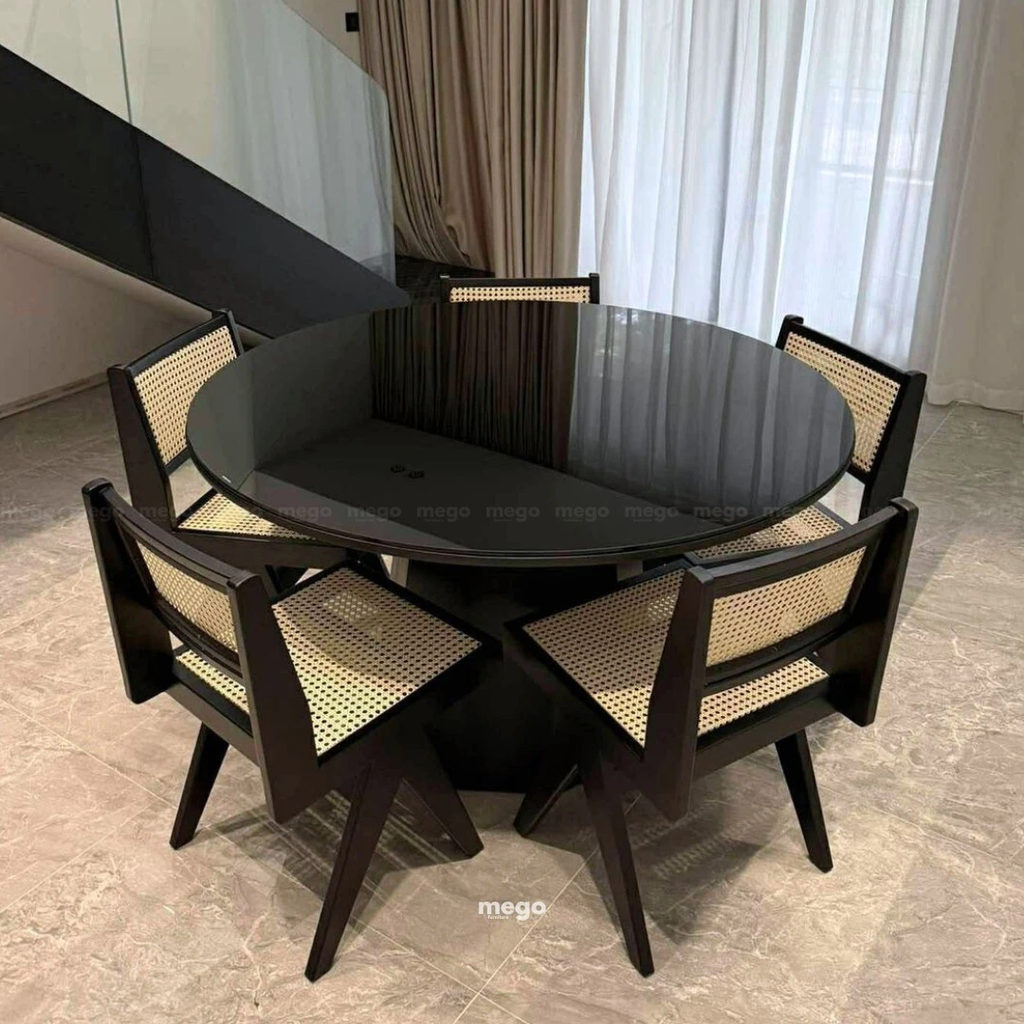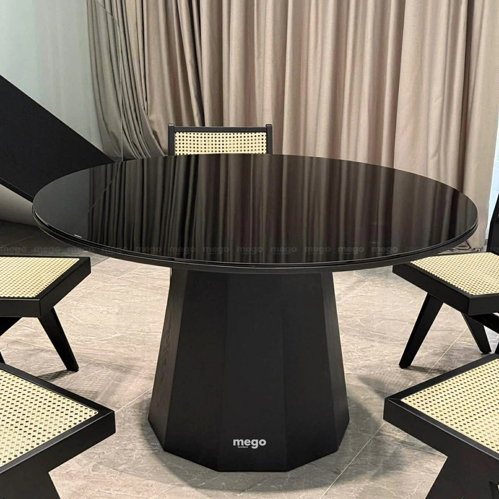 - Bàn ăn tròn được thiết kế tối giản, tinh tế và tạo nên cảm giác vô cùng gần gũi, gắn kết gia đình.