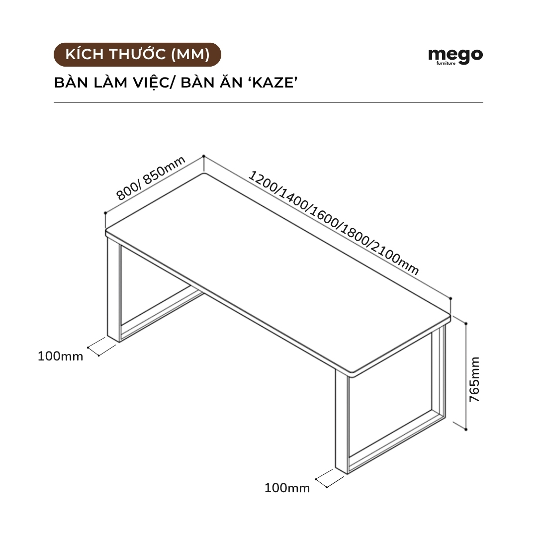 - Bàn làm việc/ bàn ăn KAZE được thiết kế tối giản, tinh gọn, phù hợp với nhiều không gian, phong cách khác nhau từ Japandi, scandinavian,...