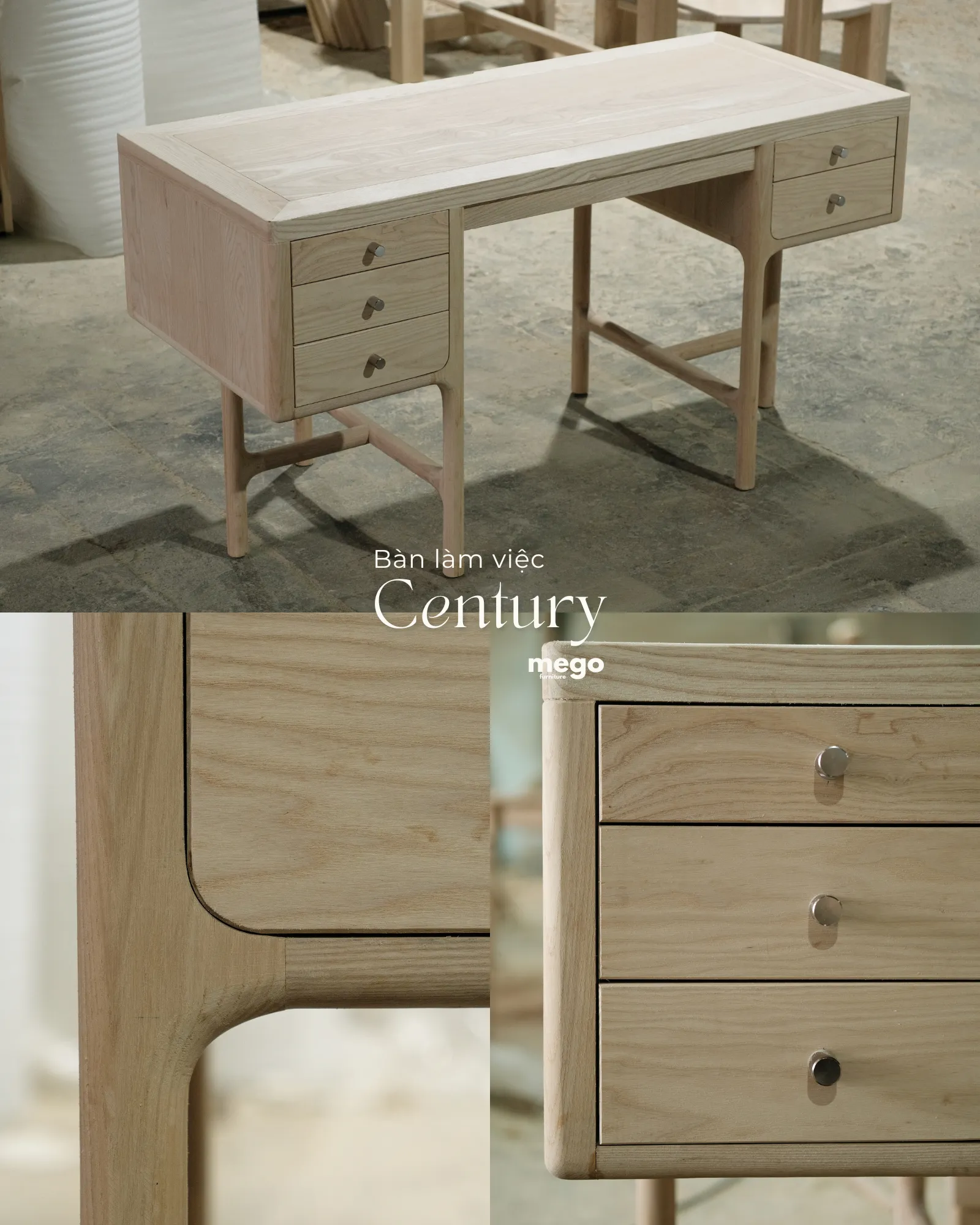 - Bàn làm việc CENTURY được thiết kế mang đậm phong cách Mid-Century, tối giản nhưng vô cùng đặc biệt với các đường bo mềm mại, pha lẫn chút cổ điển, sang trọng cho không gian.