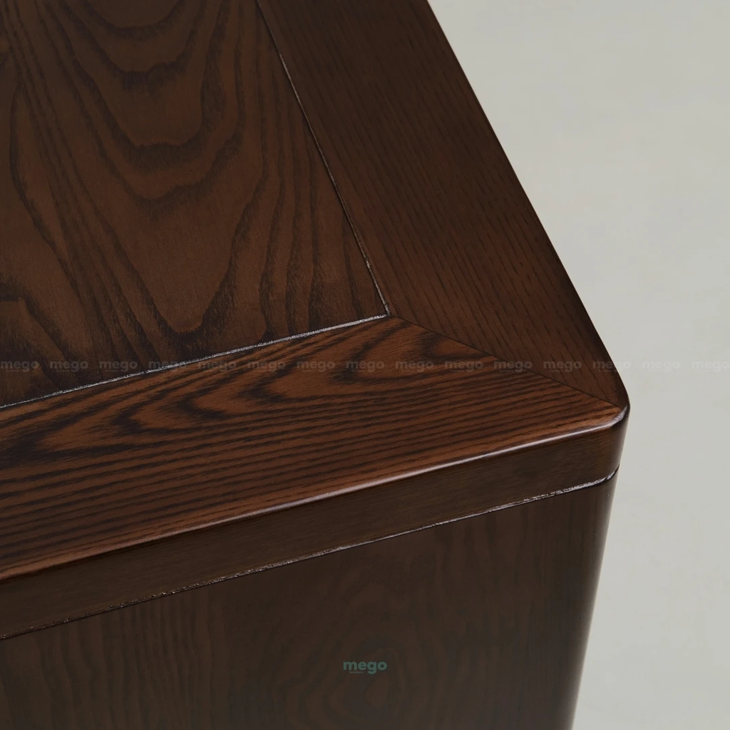 - Gia công tỉ mỉ, chỉn chu từ phần thô (các phần gỗ được liên kết vững chắc với nhau bằng mộng ghép nối âm dương, hoàn toàn không dùng vít - tạo nên sự cao cấp và giá trị thủ công cho sản phẩm) cho đến sơn phủ hoàn thiện bởi các thợ tay nghề cao tại xưởng nội thất Mego.