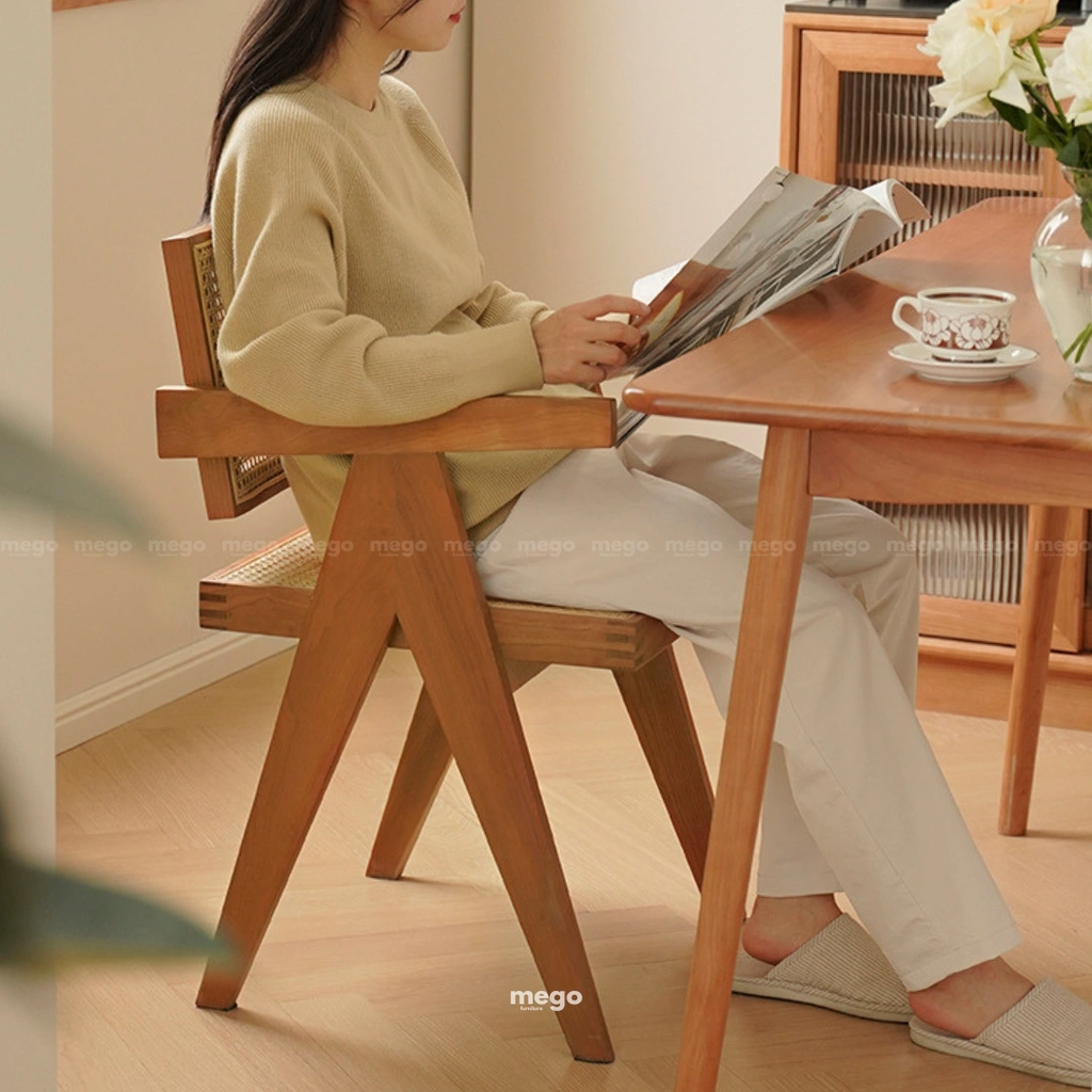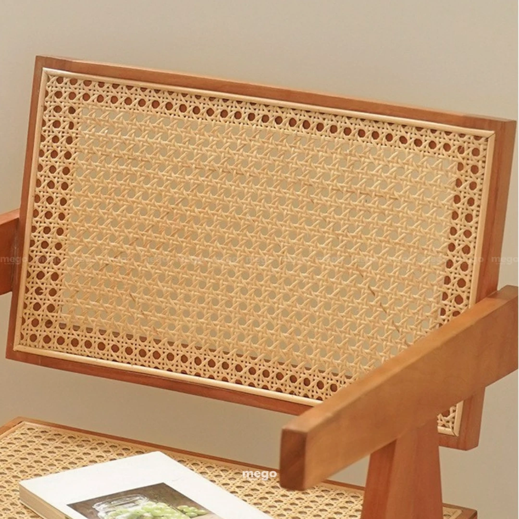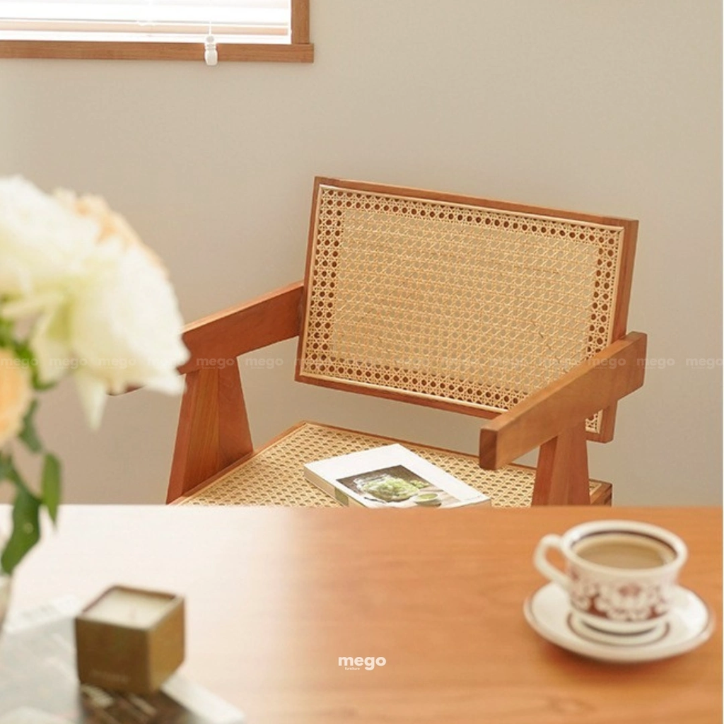 - Mặt ngồi và tựa lưng chất liệu đan mây mắt cáo, tạo nên sự nhẹ nhàng và duyên dáng cho chiếc ghế.
