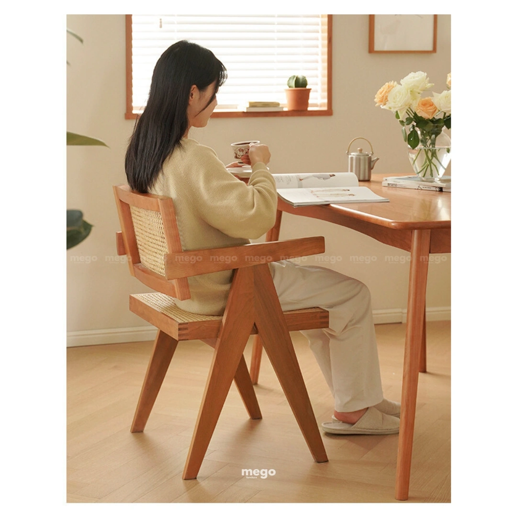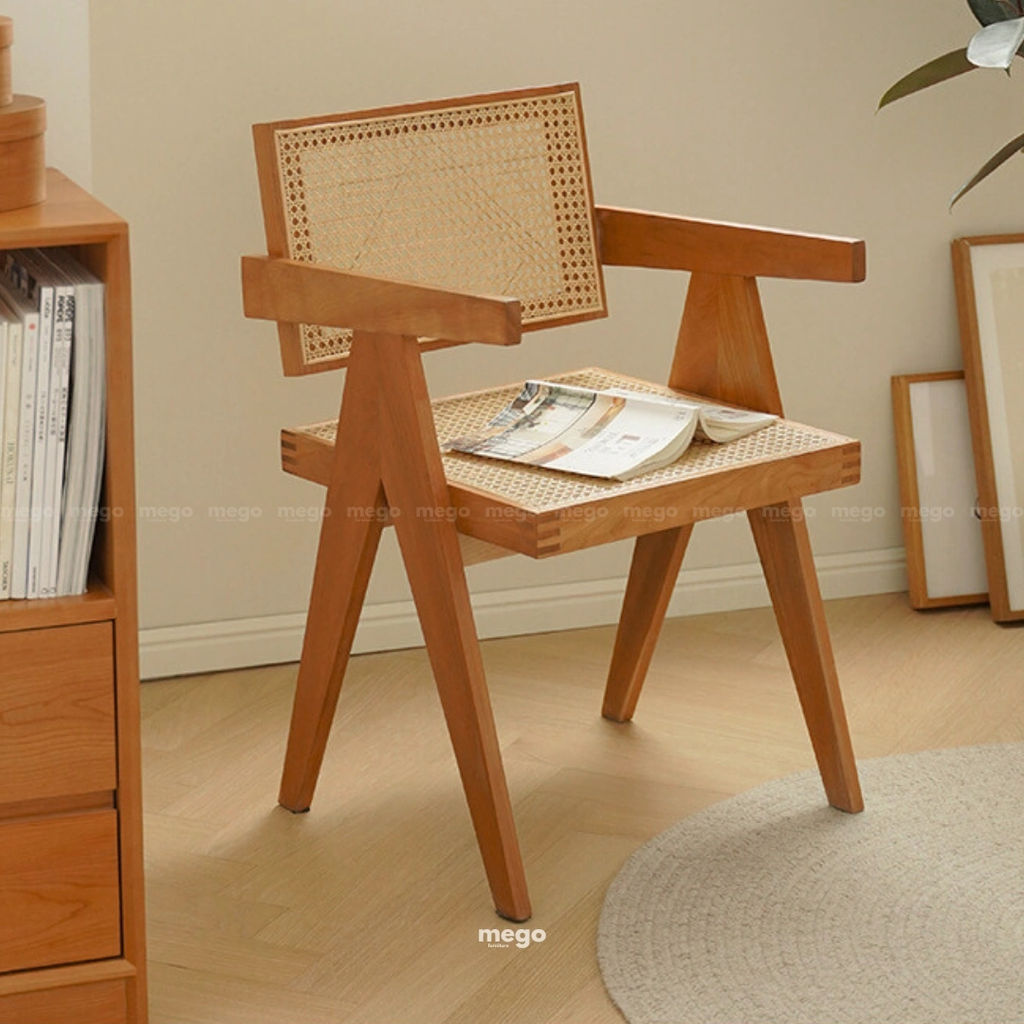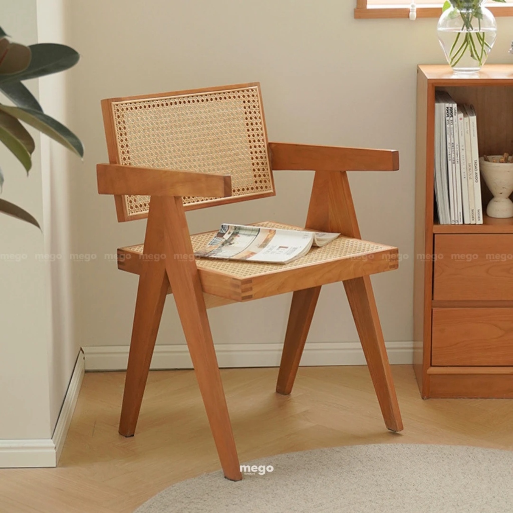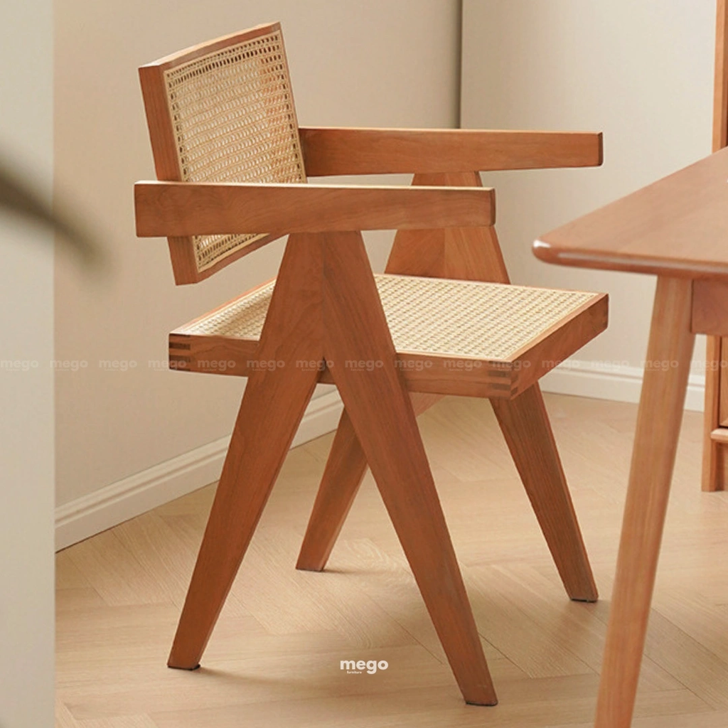 - Mặt ngồi và tựa lưng chất liệu đan mây mắt cáo, tạo nên sự nhẹ nhàng và duyên dáng cho chiếc ghế.