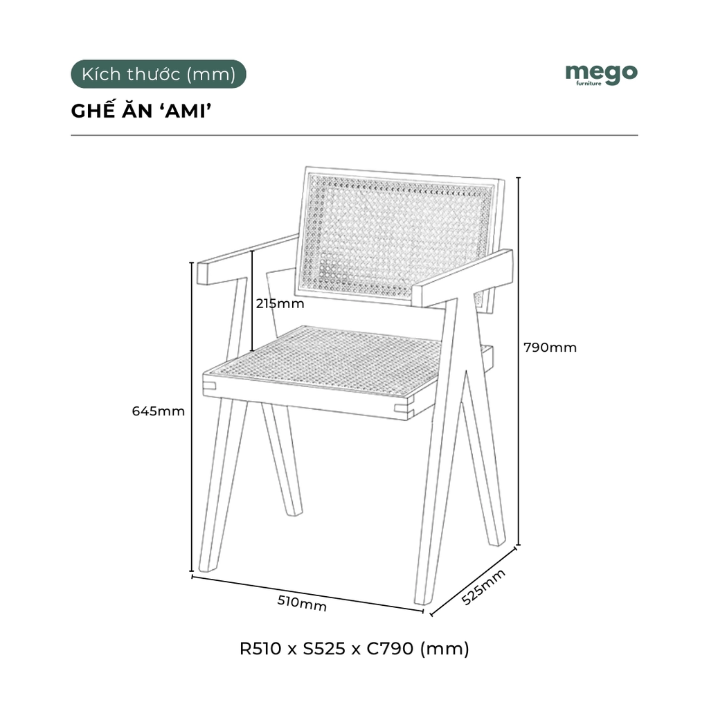THÔNG SỐ SẢN PHẨM: GHẾ ĂN GỖ TỰ NHIÊN 'AMI'