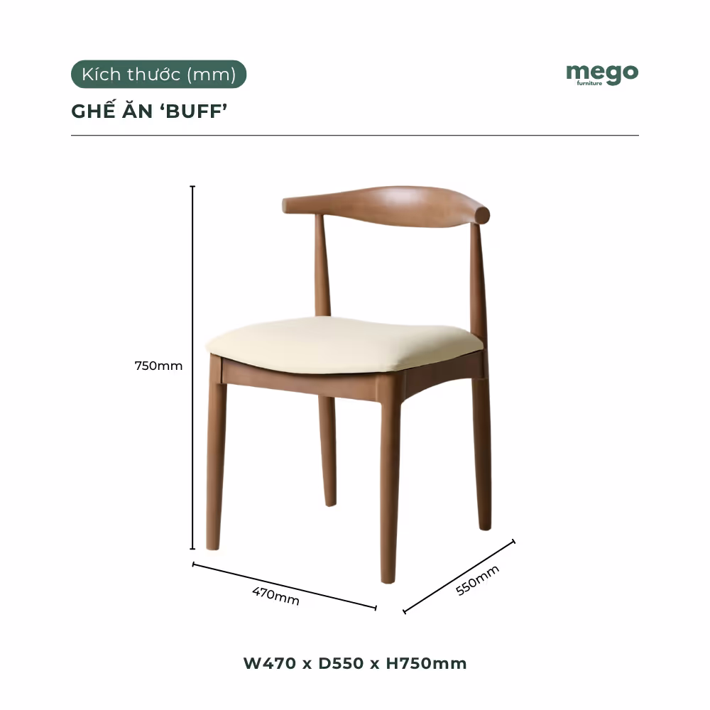 THÔNG SỐ SẢN PHẨM: GHẾ ĂN GỖ TỰ NHIÊN 'BUFF'