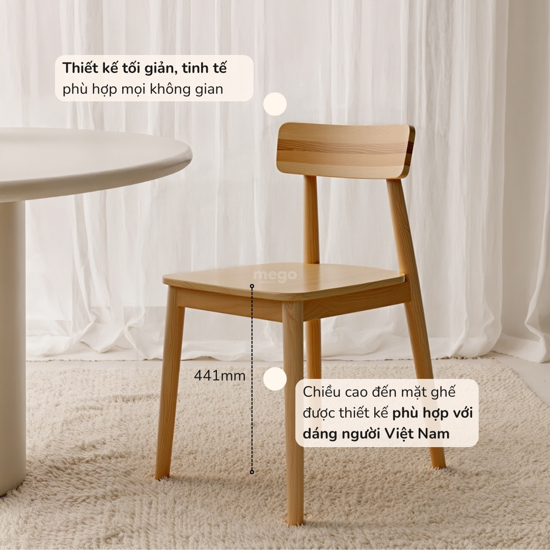 THÔNG SỐ SẢN PHẨM: GHẾ ĂN GỖ TỰ NHIÊN 'MIN'