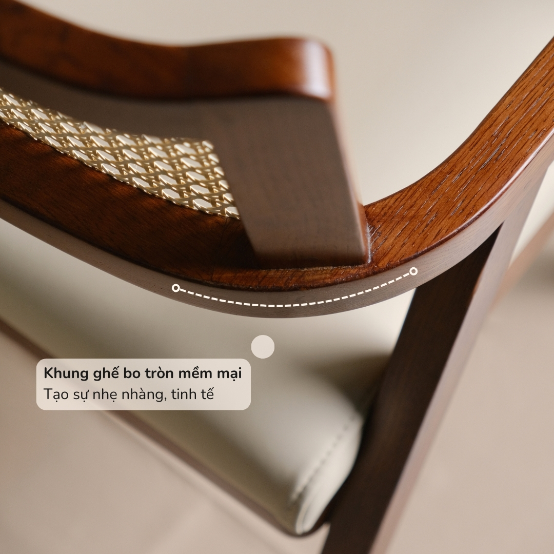 - Các phần khung ghế được bo tròn mềm mại, tạo cảm giác duyên dáng và an toàn.