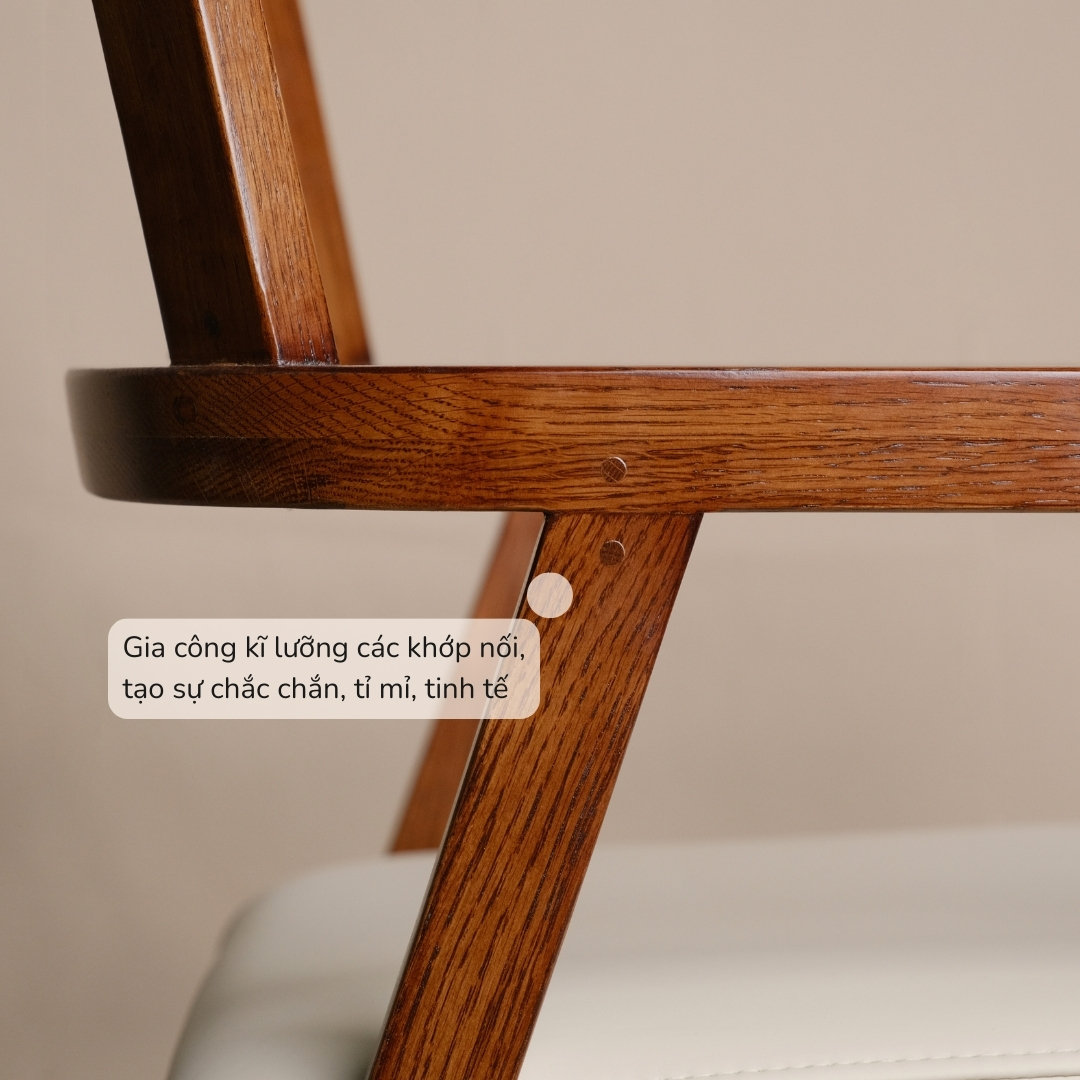 - Khung ghế được gia công chỉn chu bằng chất liệu gỗ sồi Nga/ sồi Mỹ chắc chắn, bền đẹp.