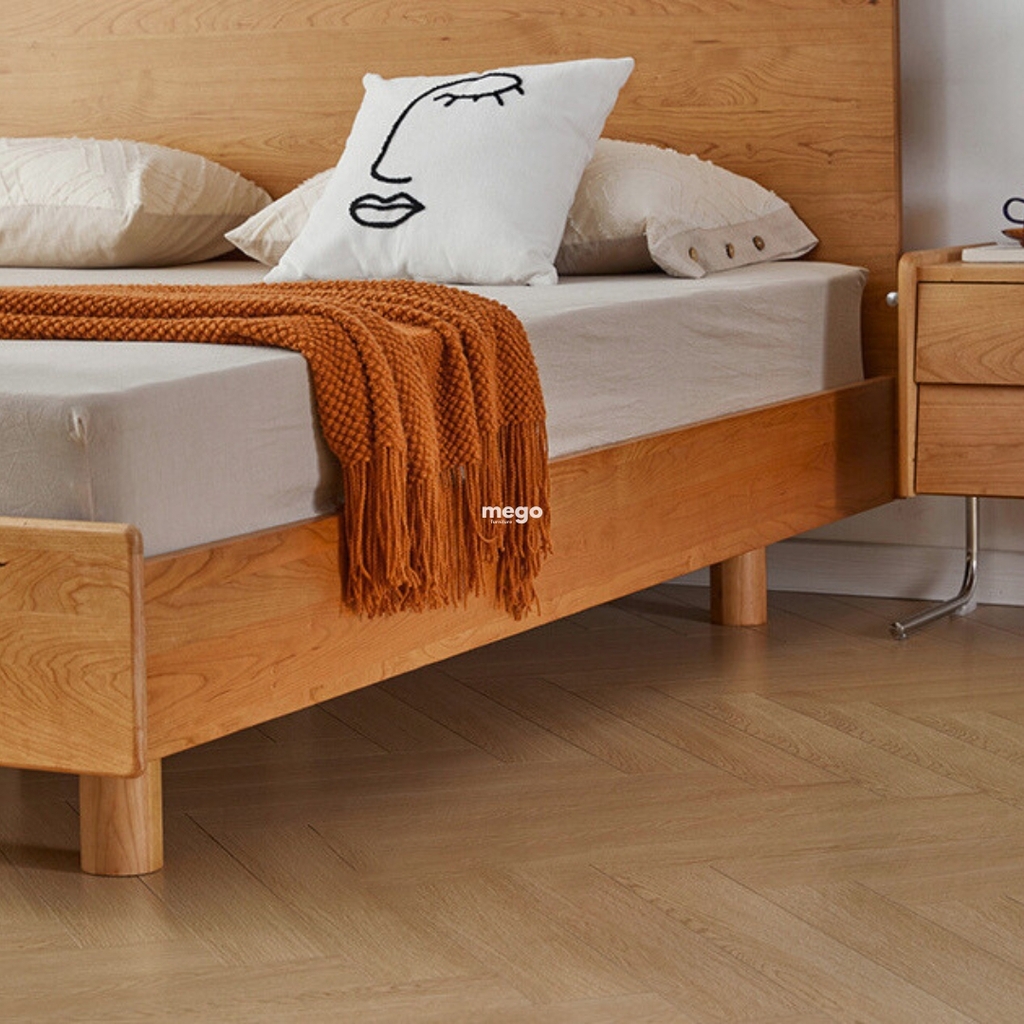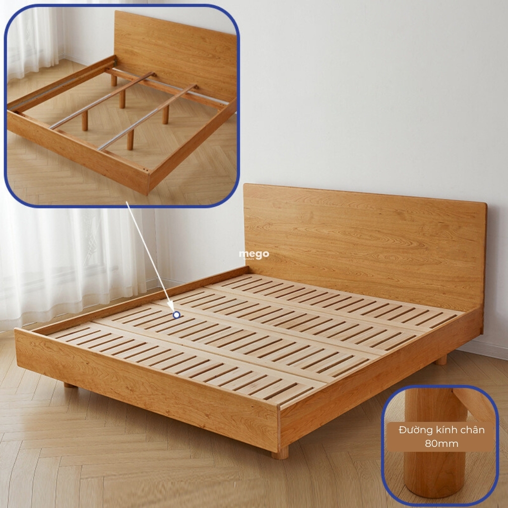 - Khung giường chất liệu gỗ sồi tự nhiên bền đẹp, chắc chắn theo thời gian.