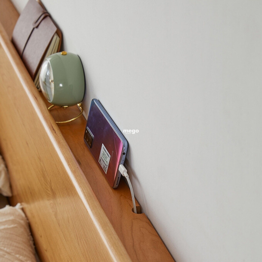 - Phần đầu giường có thể đặt các đồ dùng nhỏ tiện lợi, đồ decor,...