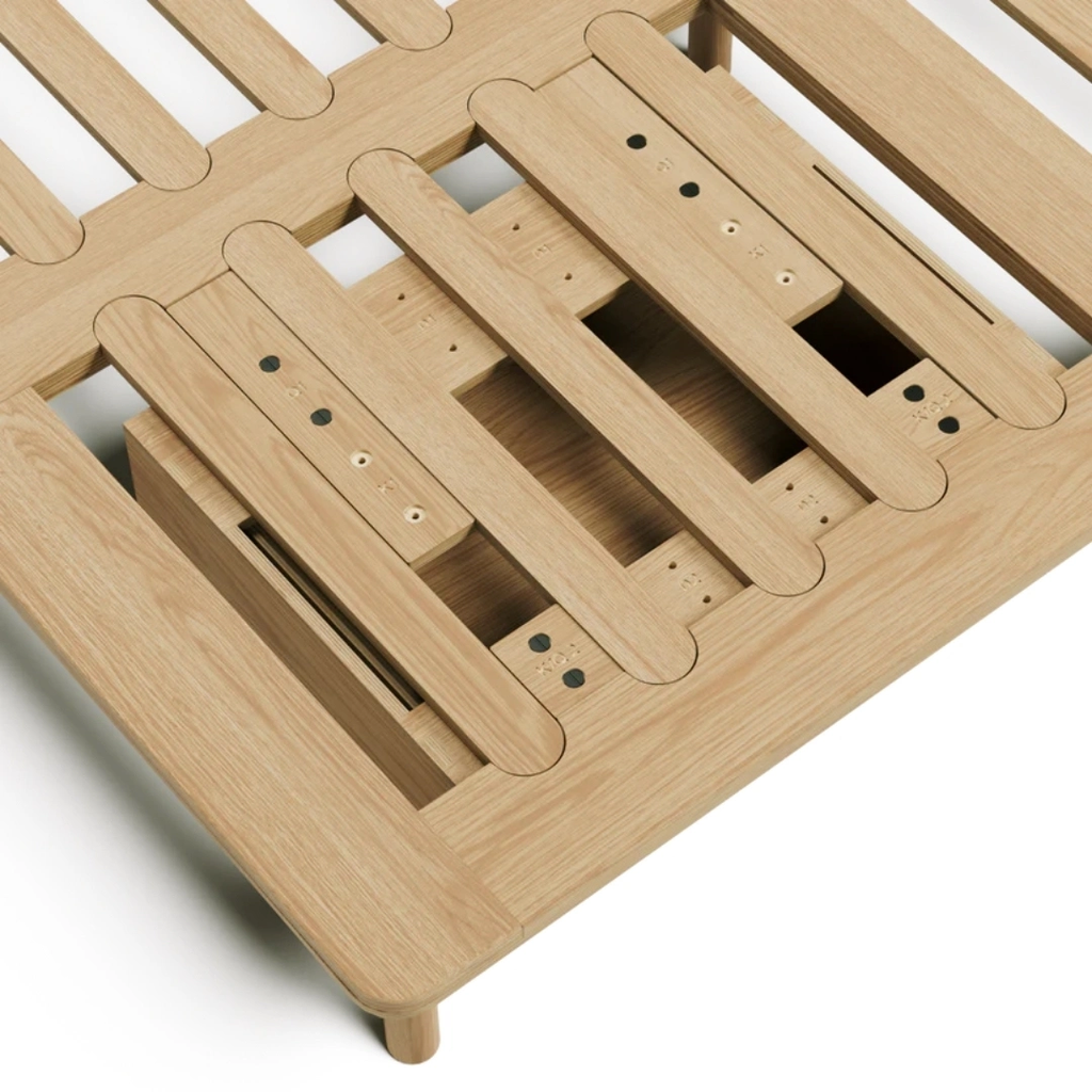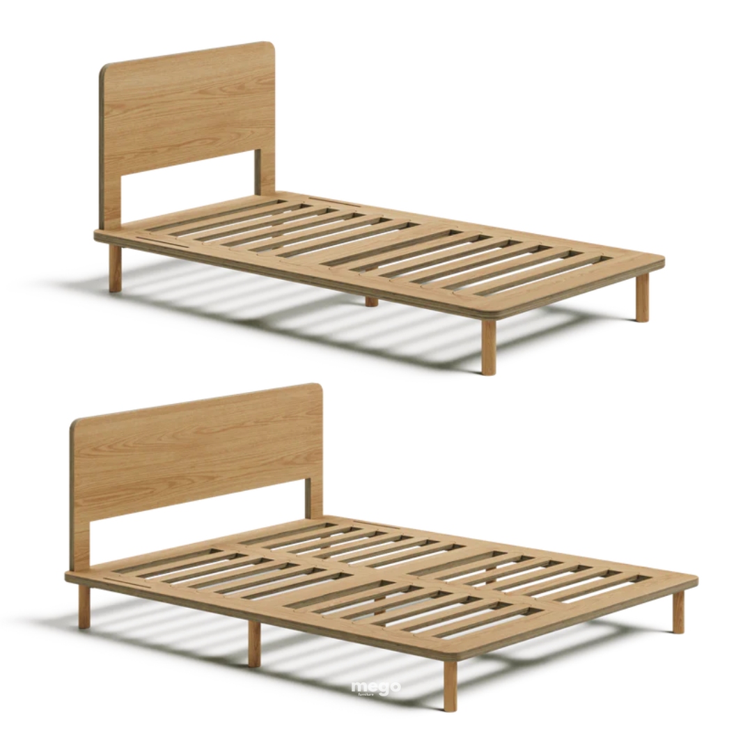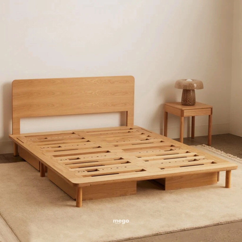 Giường: Plywood Veneer Sồi + chân gỗ Sồi tự nhiên