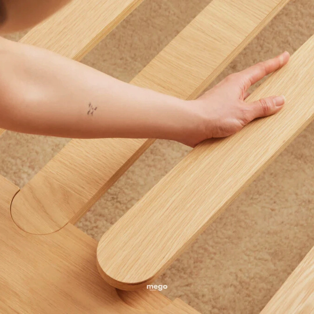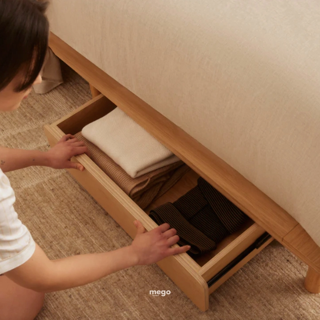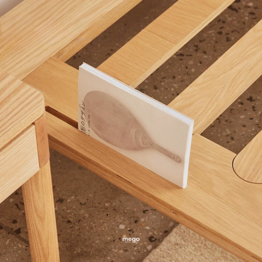 Giường: Plywood Veneer Sồi + chân gỗ Sồi tự nhiên