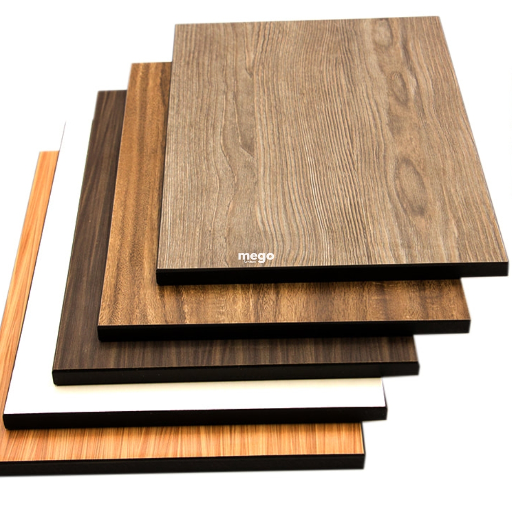 + Ưu điểm: Khả năng chống trầy xước, va đập, chịu nhiệt, chịu nước tốt hơn Melamine. Đa dạng về bề mặt (mờ, bóng, sần) và vân trang trí (giả gỗ, đá, vải...).