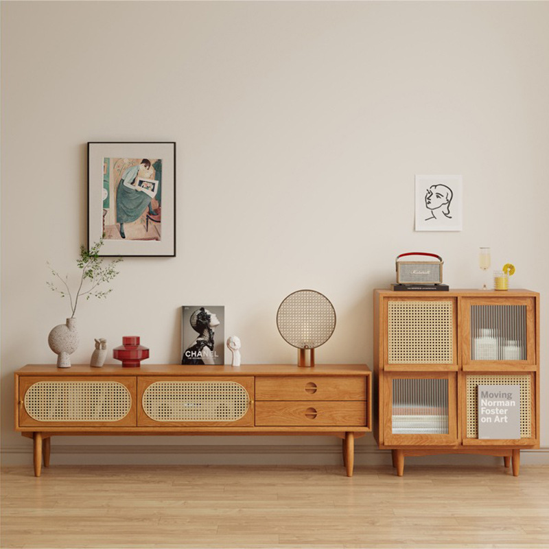 - Điểm đặc biệt: Hoàn thiện bằng chất liệu gỗ sồi tự nhiên, bền đẹp kết hợp chất liệu đan mây mắt cáo ở phần cánh cửa đầy duyên dáng và cổ điển, mang lại vẻ đẹp tinh tế cho không gian.