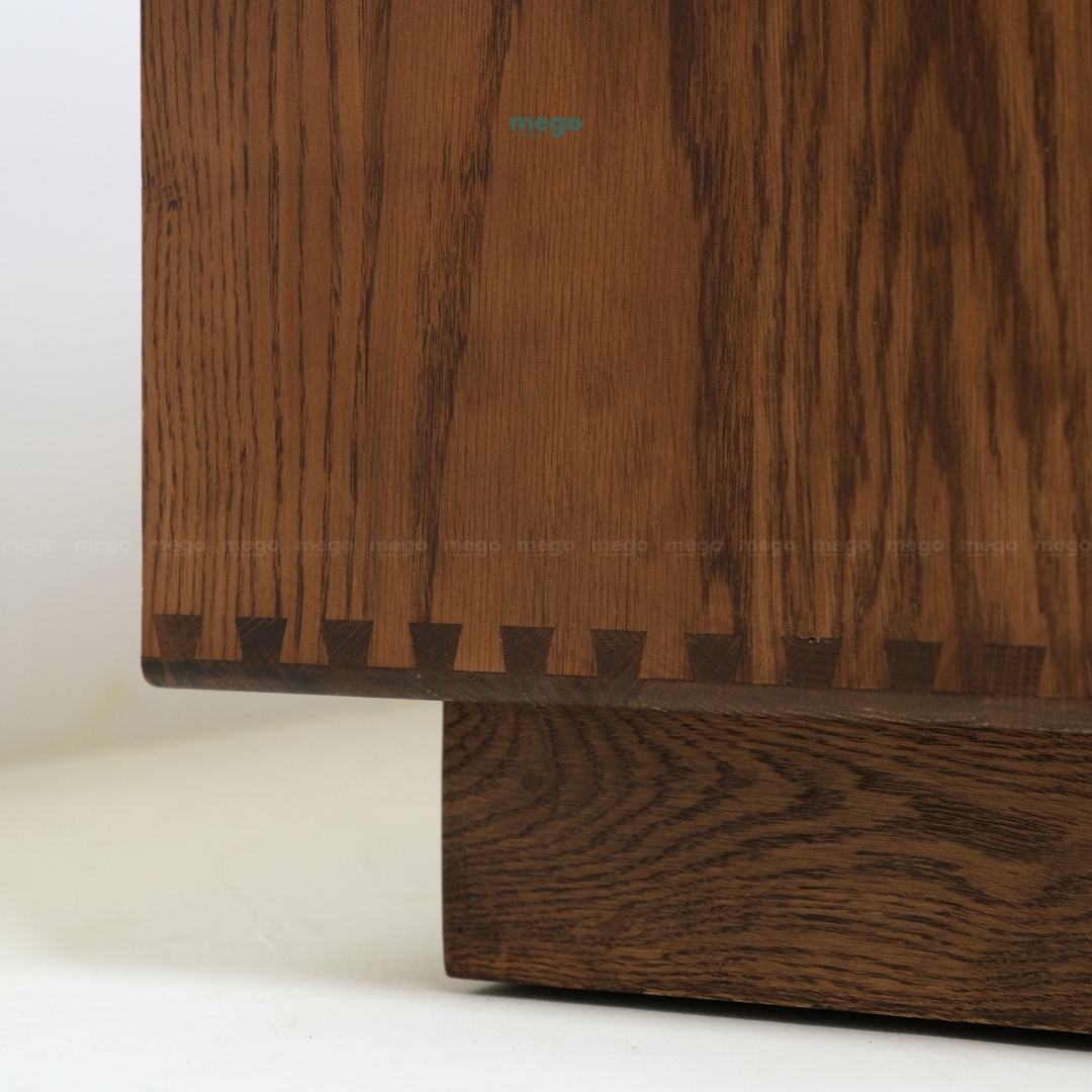 - Sử dụng mối ghép nối 'mộng đuôi cá', tạo sự liên kết vững chắc cho chiếc kệ.