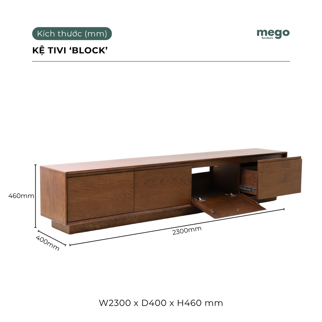 THÔNG SỐ KỸ THUẬT: KỆ TV GỖ TỰ NHIÊN 'BLOCK'
