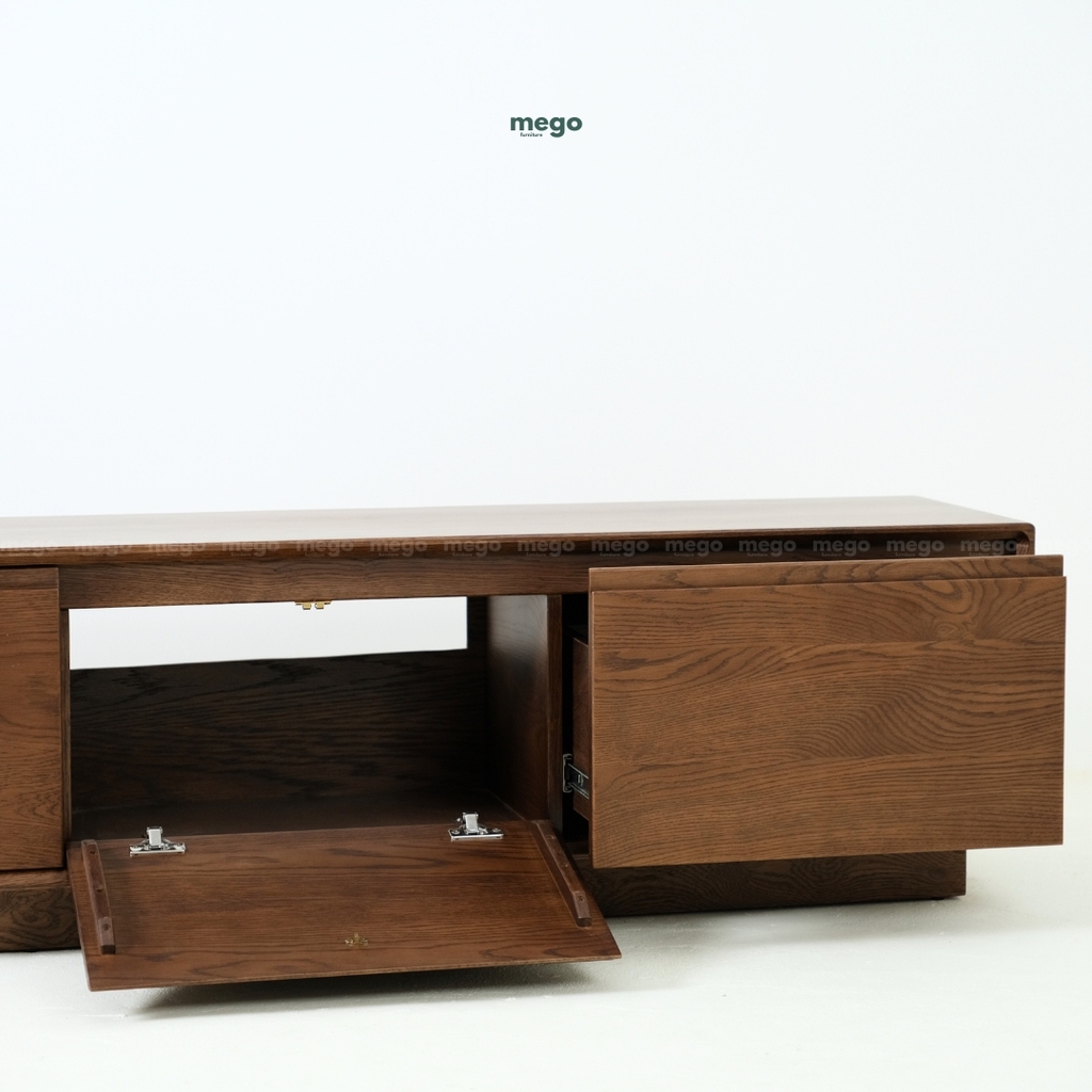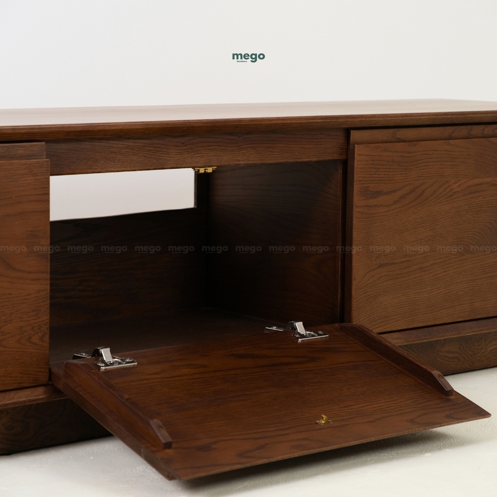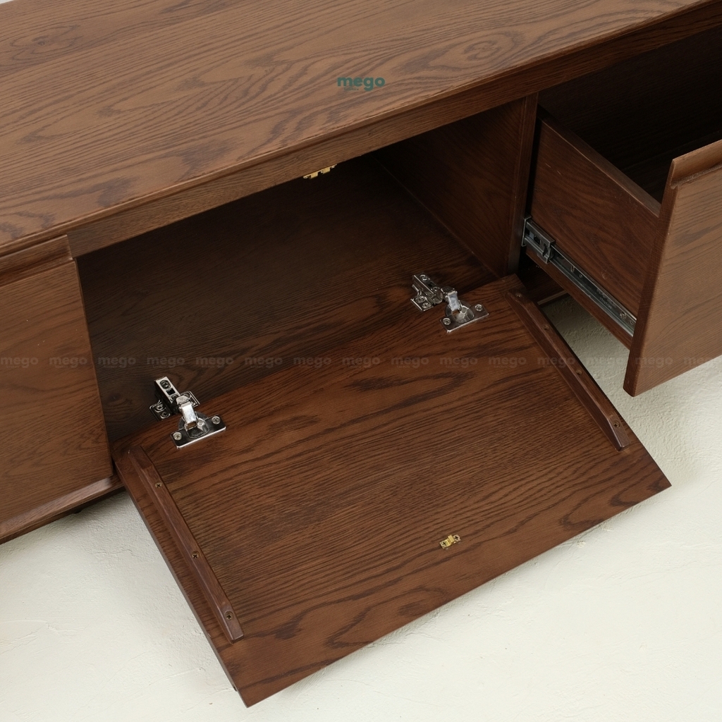 - Khung kệ TV được làm bằng chất liệu gỗ Sồi Mỹ tự nhiên nhập khẩu, sang trọng, chắc chắn và bền bỉ theo thời gian.