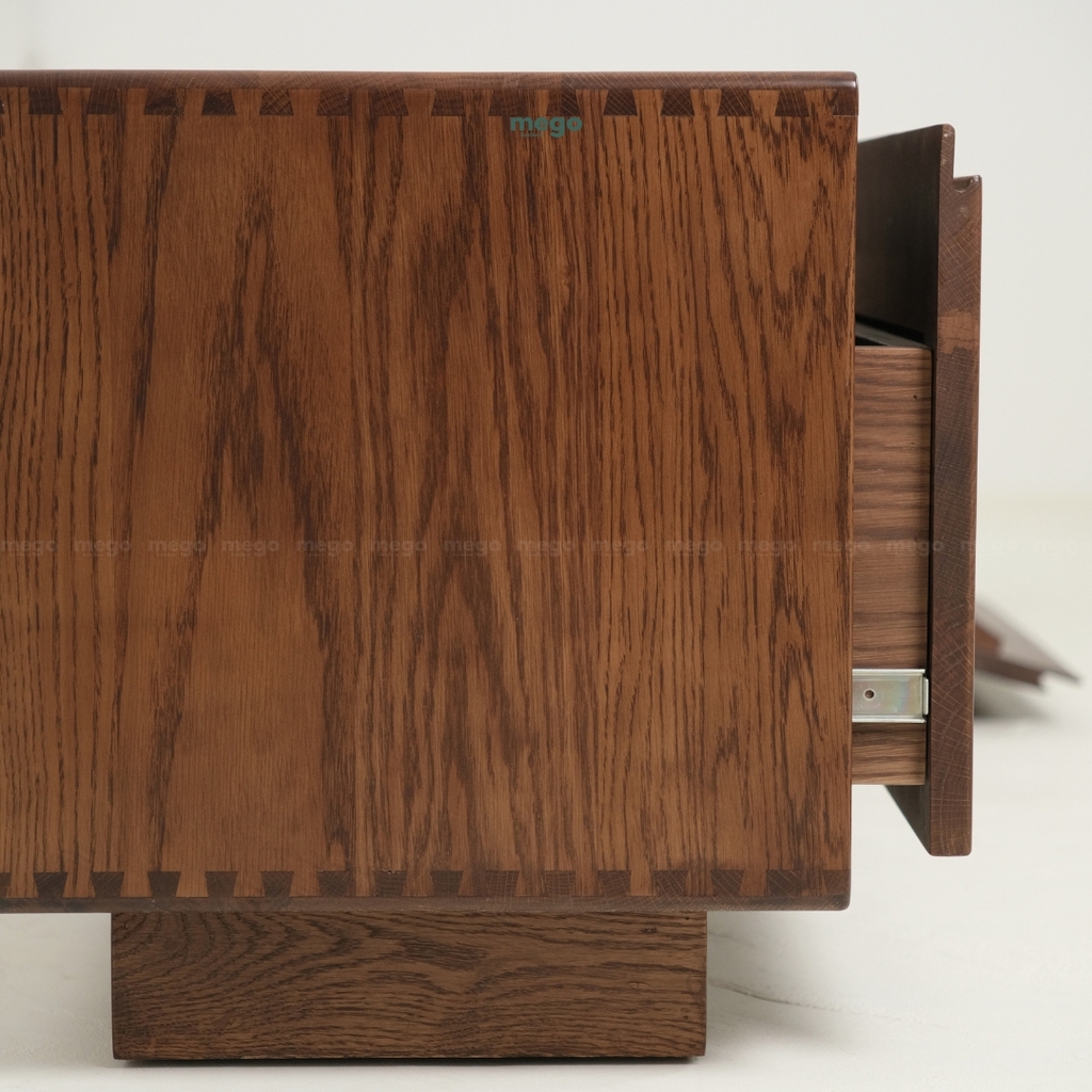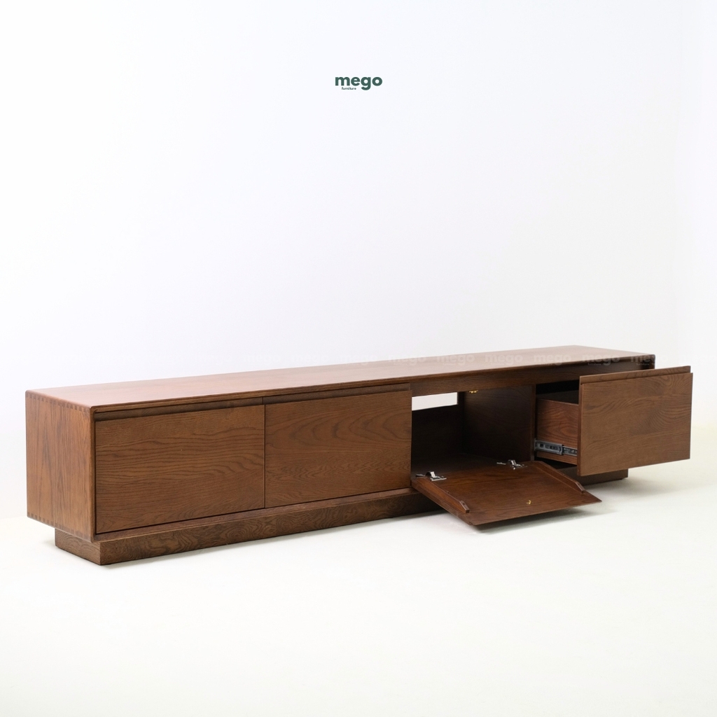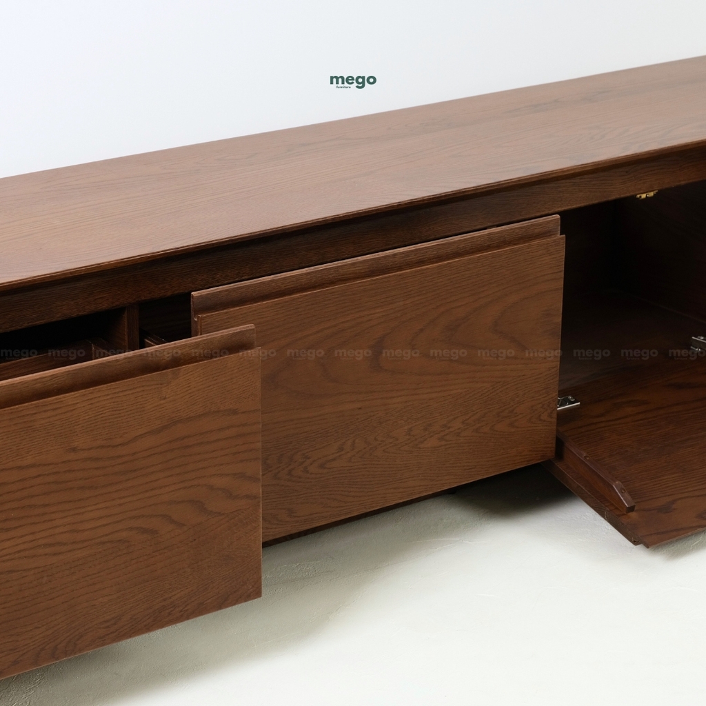 - Khung kệ TV được làm bằng chất liệu gỗ Sồi Mỹ tự nhiên nhập khẩu, sang trọng, chắc chắn và bền bỉ theo thời gian.