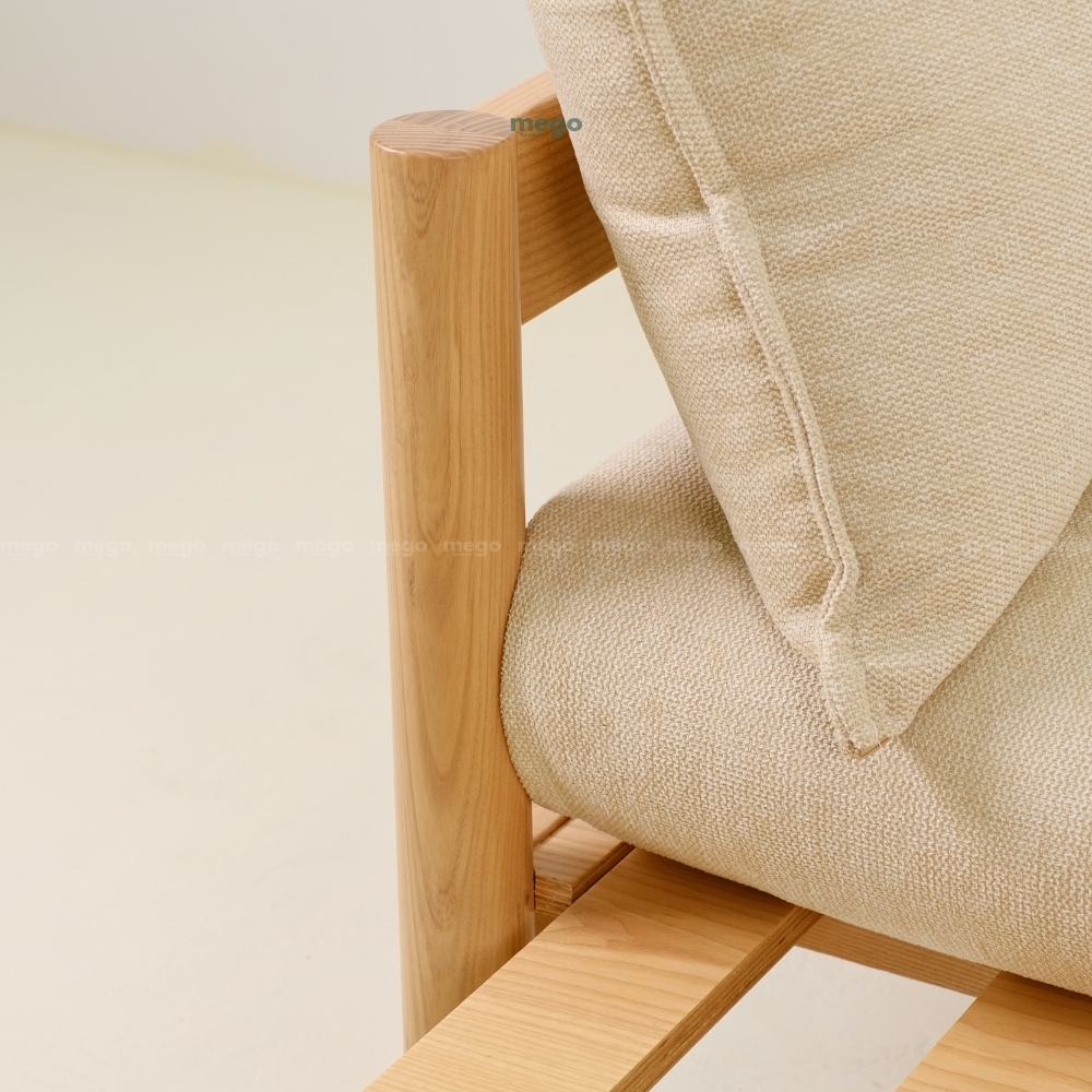 Khung ghế màu tự nhiên, vải bọc màu kem be