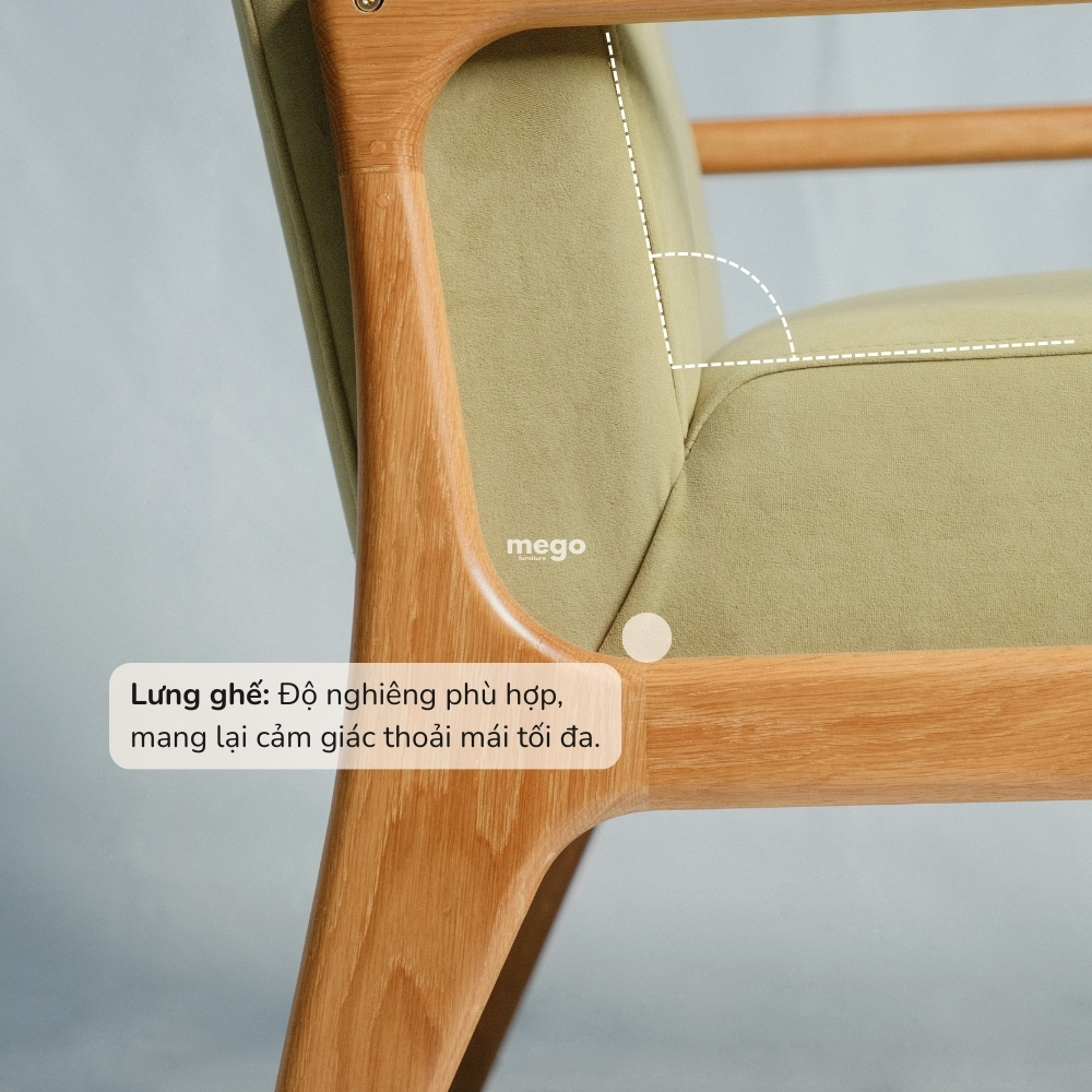 - Khung ghế: Gỗ Sồi Nga tự nhiên chắc chắn, bền đẹp, sang trọng.