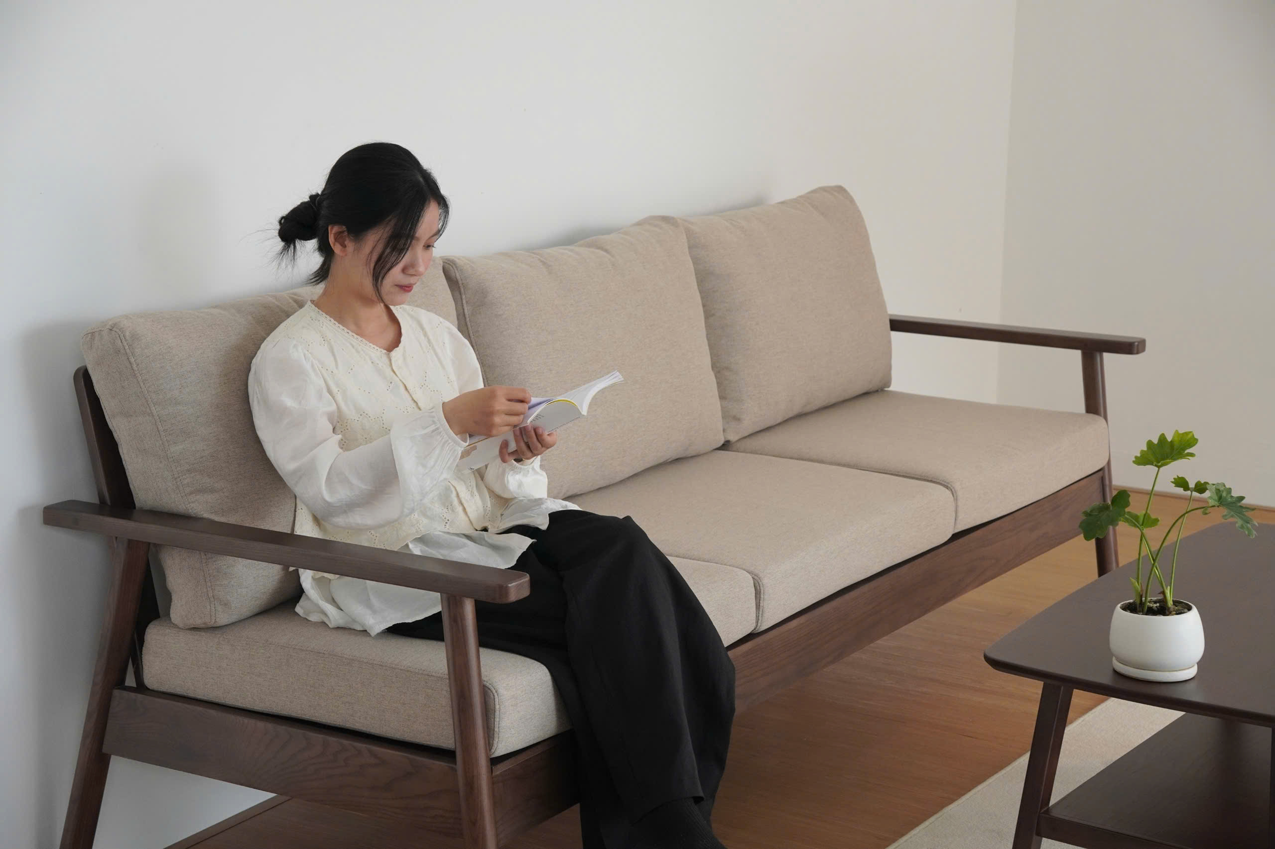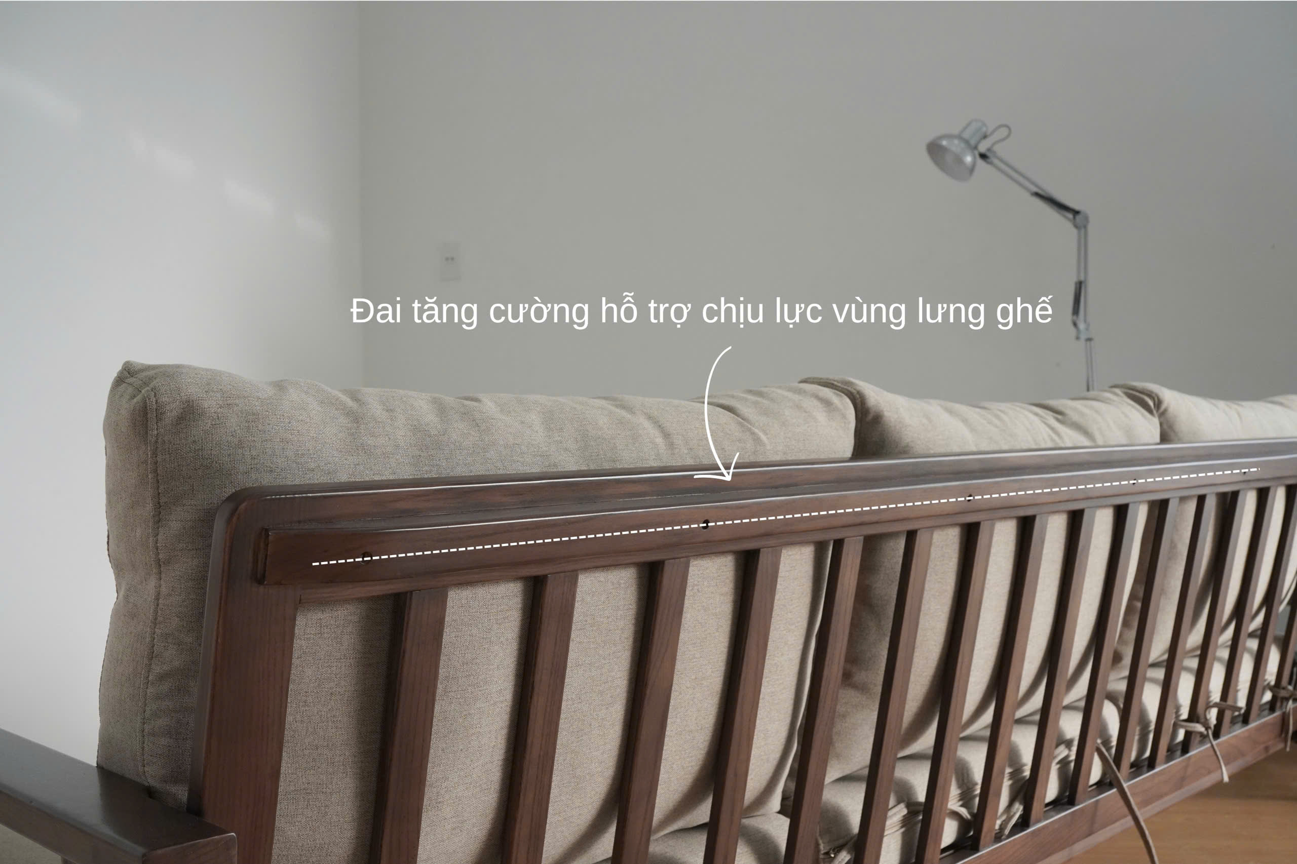 Gỗ sồi tự nhiên, đệm mút D40, tựa lưng bông gòn |