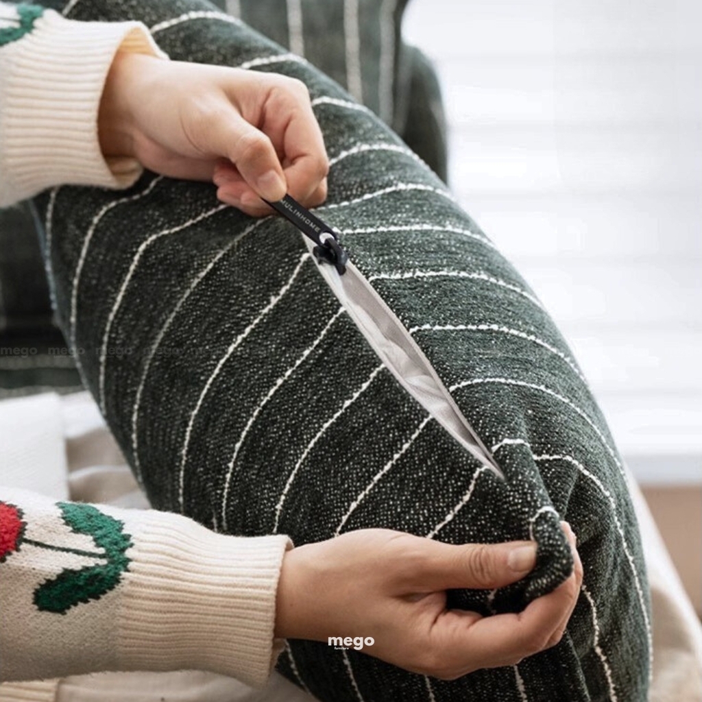 - Vỏ bọc vải bố sọc cao cấp, mềm mại, tạo cảm giác nhẹ nhàng cho không gian.