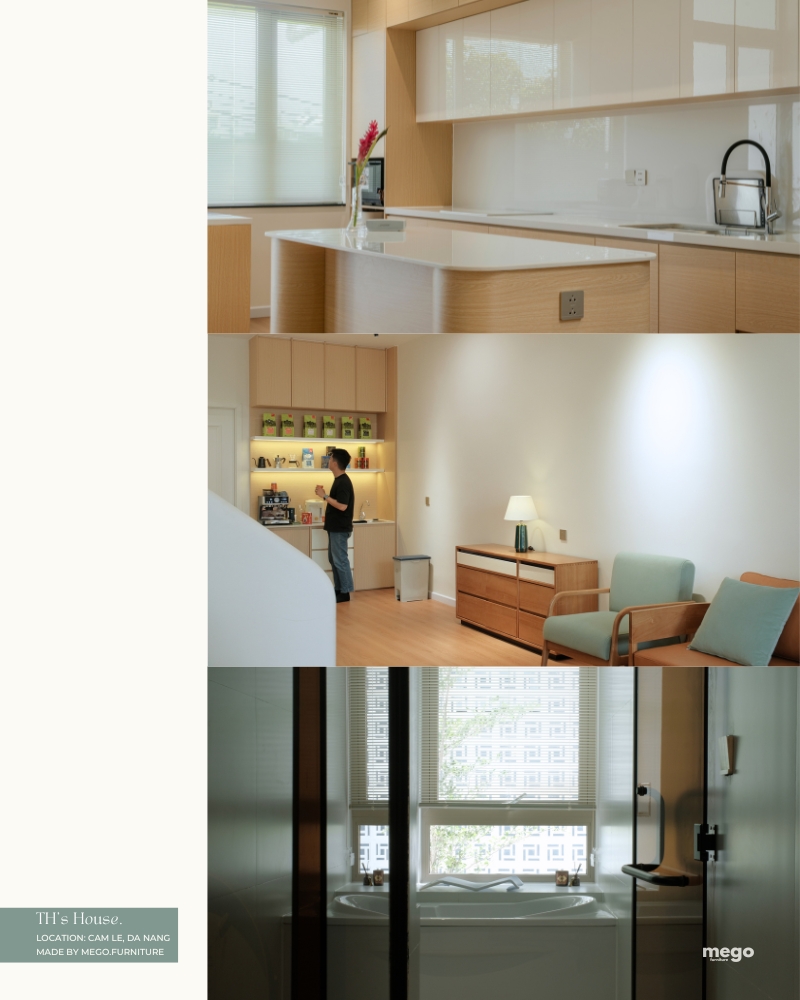 TH’s HOUSE không chỉ là một dự án hoàn thiện mà còn là minh chứng rõ nét cho năng lực và sự tận tâm của Mego Furniture. Với vai trò là xưởng nội thất cao cấp tại Đà Nẵng và khu vực miền Trung, chúng tôi tự hào về quy trình sản xuất tự chủ, đội ngũ thợ lành nghề và khả năng hiện thực hóa mọi ý tưởng thiết kế, dù là nội thất nhà ở Đà Nẵng hay nội thất căn hộ. Mục tiêu của chúng tôi là mang đến những giải pháp nội thất gỗ tự nhiên và các vật liệu công nghiệp chất lượng, uy tín, bền đẹp và phù hợp với phong cách sống của từng gia đình.