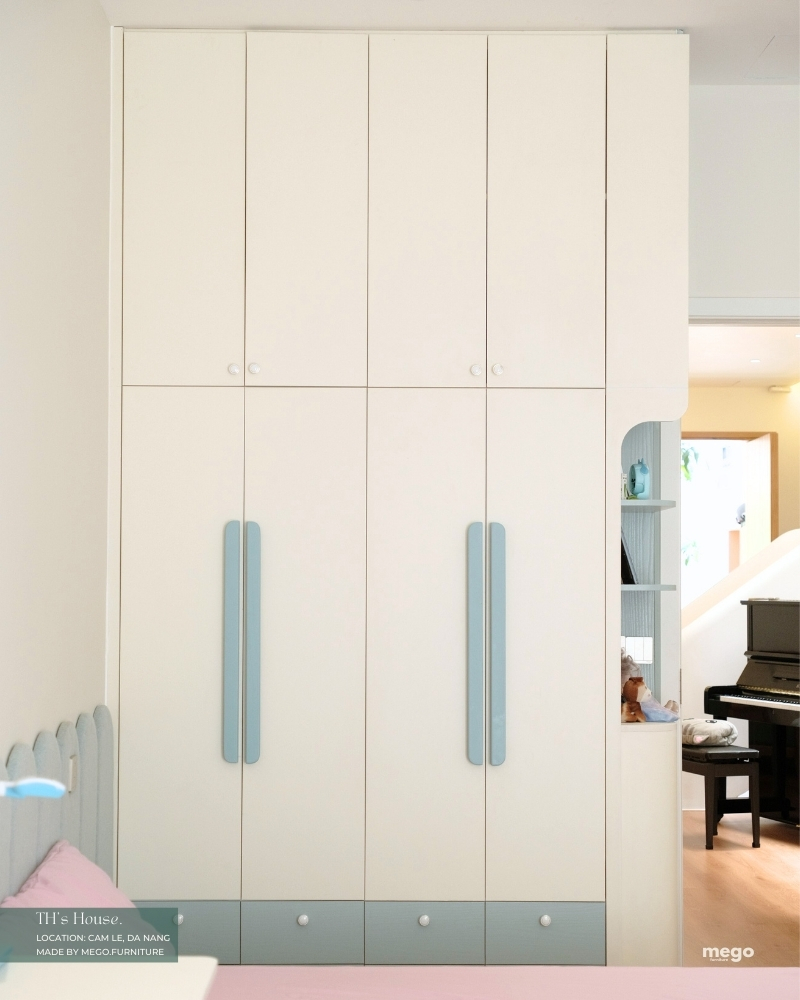 Toàn bộ nội thất được thi công nội thất theo bản vẽ 3D, sản xuất tại xưởng, và thi công hoàn thiện bởi đội ngũ Mego. Từng chi tiết – từ công năng, vật liệu, màu sắc đến ánh sáng – đều được tính toán kỹ lưỡng, mang lại một không gian sống nhẹ nhàng, tối giản nhưng không hề nhàm chán. Từng chi tiết đều được bố trí có chủ đích để mỗi góc nhà đều chỉn chu, ấm cúng và thật thơ như thể bước ra từ "Pinterest" vậy!