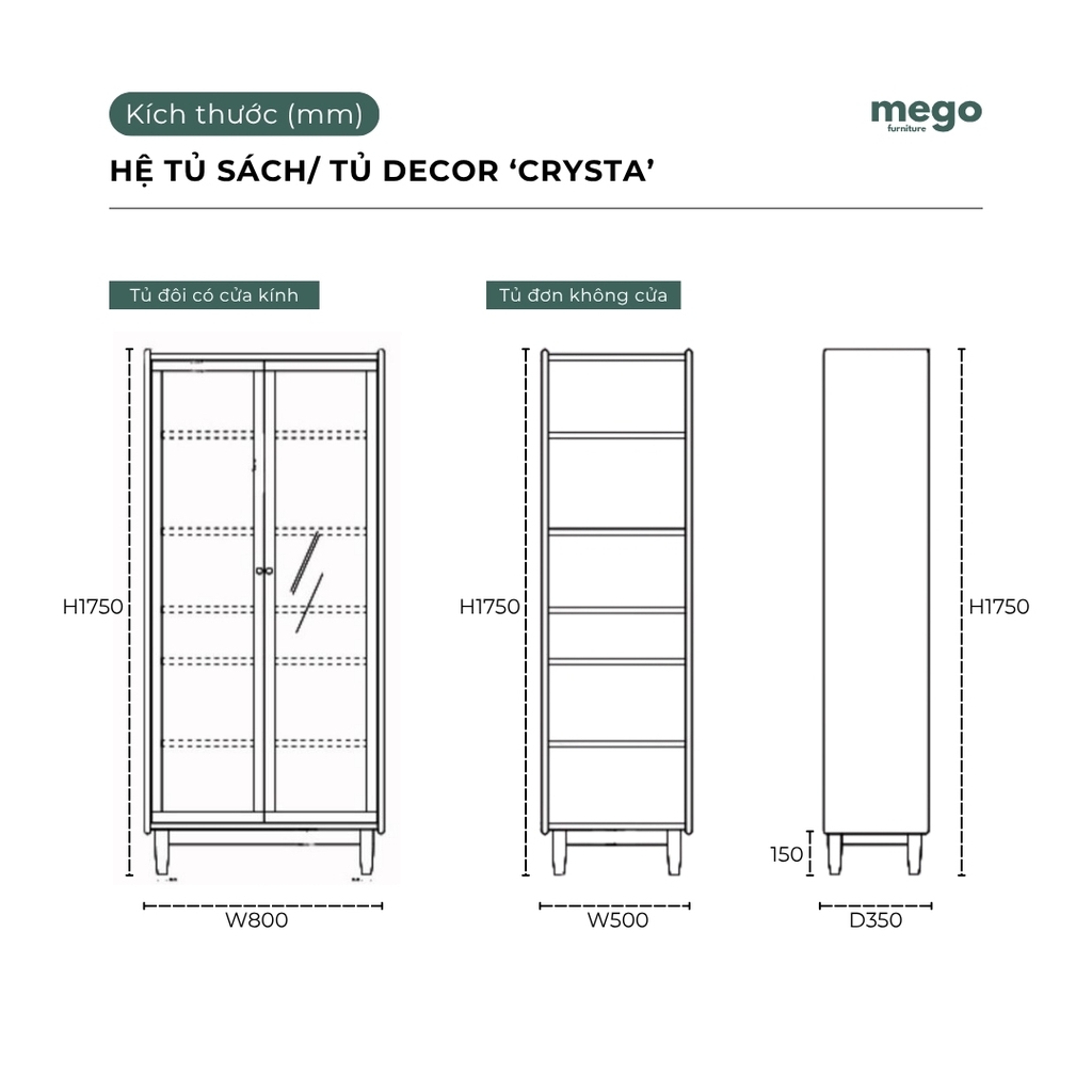 THÔNG SỐ KỸ THUẬT: TỦ SÁCH TỐI GIẢN 'CRYSTA'