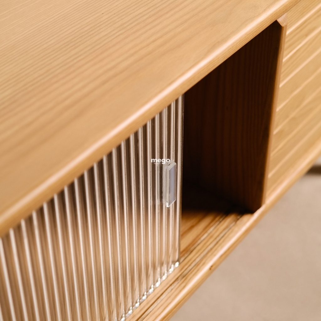 - Mặt tủ chất liệu kính sọc hiện đại, tạo sự thanh thoát và tinh tế.