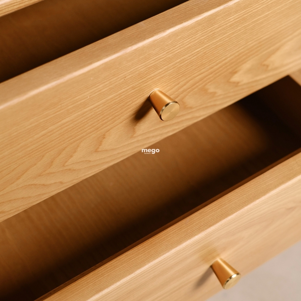 - Mặt tủ kéo sử dụng núm đồng sang trọng, tinh tế.