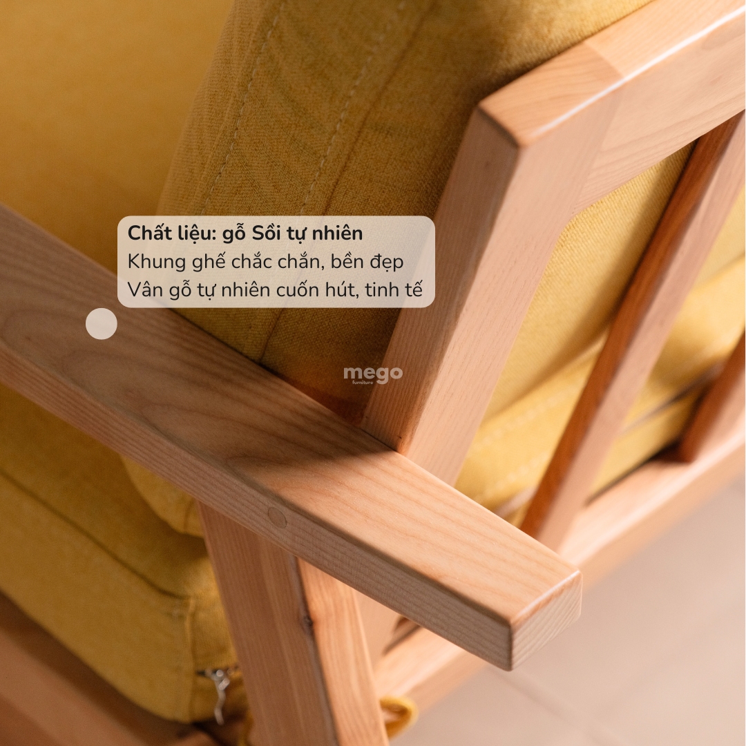 Chất lượng vượt trội từ gỗ Sồi tự nhiên: Mọi sản phẩm sofa của Mego đều được chế tác từ gỗ Sồi tự nhiên bền đẹp, đã qua xử lý kỹ lưỡng để chống mối mọt, cong vênh. Sự lựa chọn vật liệu này không chỉ đảm bảo tuổi thọ lâu dài cho sản phẩm mà còn mang đến vẻ đẹp sang trọng, đẳng cấp cho không gian của bạn.