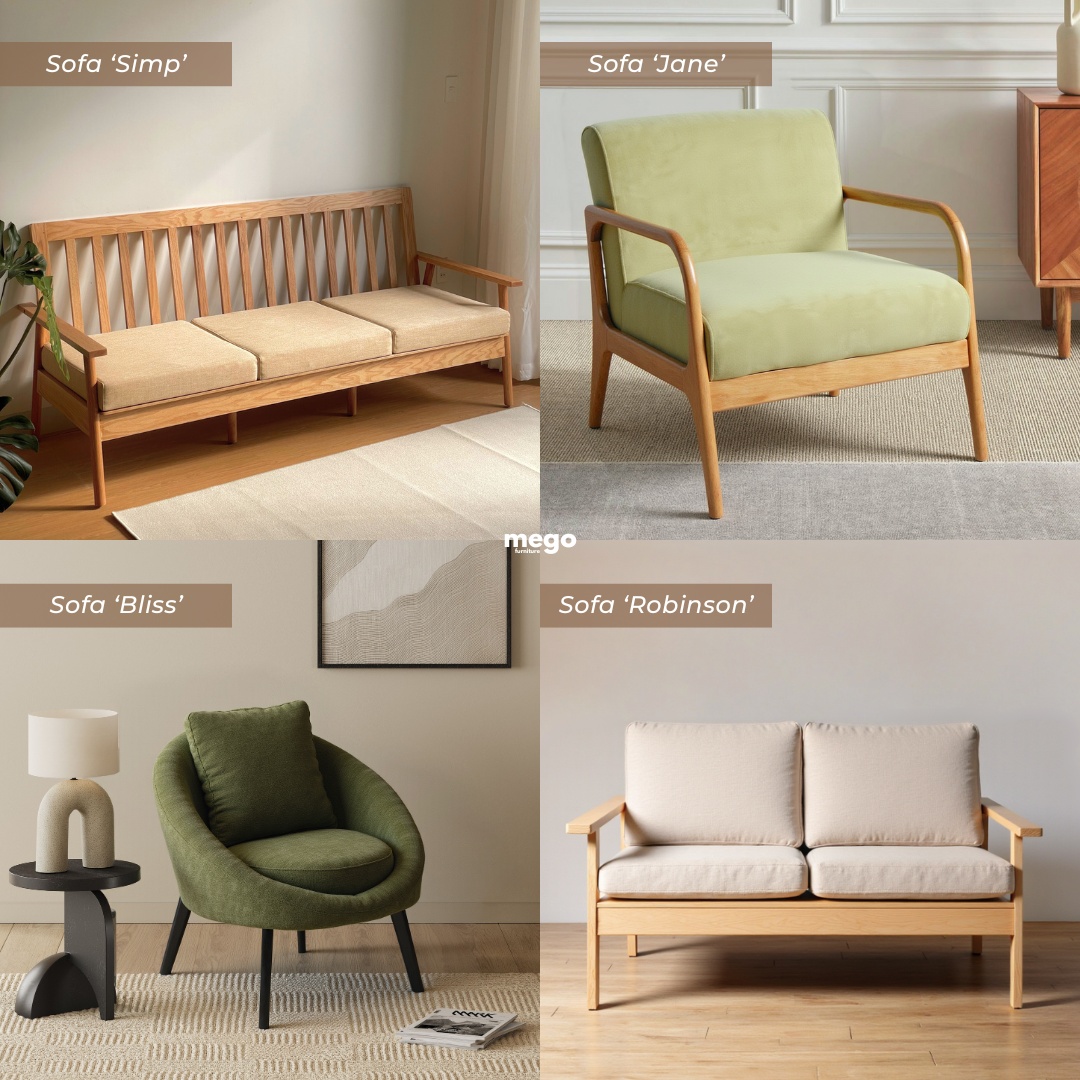 Đáp ứng mọi xu hướng: Các mẫu sofa của Mego như Sofa Simp với đường nét tối giản, Sofa Nancy mềm mại, Sofa đôi Robinson đa năng hay sofa đơn Jane và sofa đơn Bliss tinh tế đều là những lựa chọn hoàn hảo, phản ánh rõ nét các xu hướng thiết kế hiện đại nhất. Chúng tôi liên tục cập nhật mẫu mã để đảm bảo bạn luôn có được sản phẩm mới mẻ và thời thượng.
